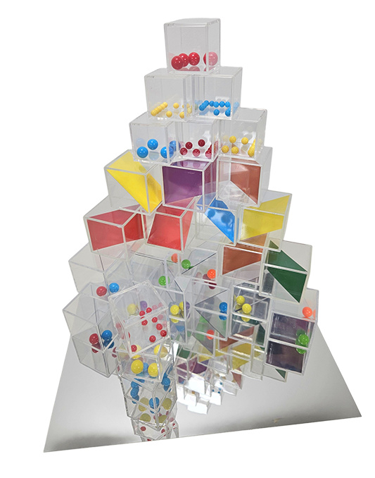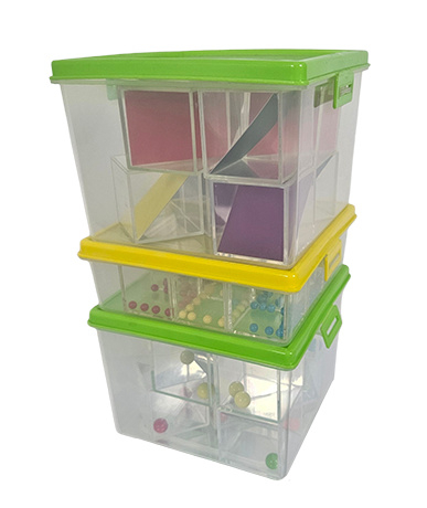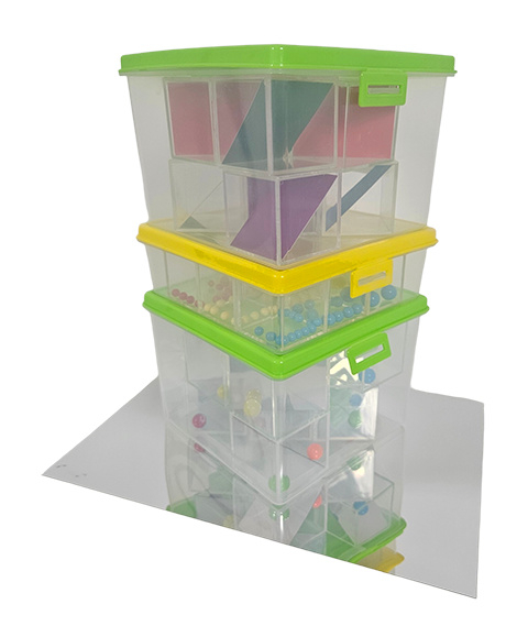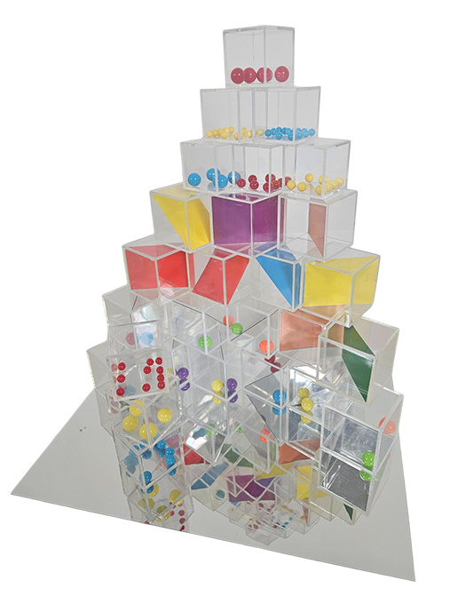 Een prachtige vordeelset met daarin de transparante blokken met kleur, transparante blokken met spiegels en balletjes en transparante blokken met balletjes. En daarbij ook nog een A4 spiegelvel, omdat bouwen op een spiegel nog veel leuker is.