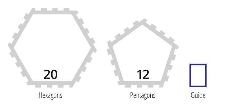 De set bestaat uit 20 grote pentagons en 12 kleinere.